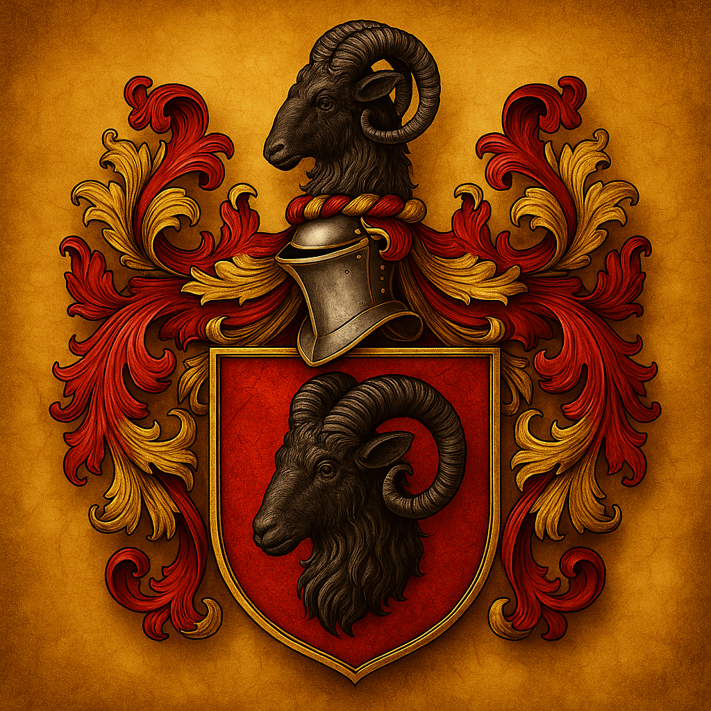 Das Wappen der Familie zeigt in Rot einen schwarzen Widderkopf, gelegentlich auch zwei Widderköpfe. Der Widder symbolisiert Standhaftigkeit, Wehrhaftigkeit und Treue – Eigenschaften, die den Charakter des Geschlechts prägten. Auf dem Helm wiederholt sich der Widderkopf zwischen roten und goldenen Decken.