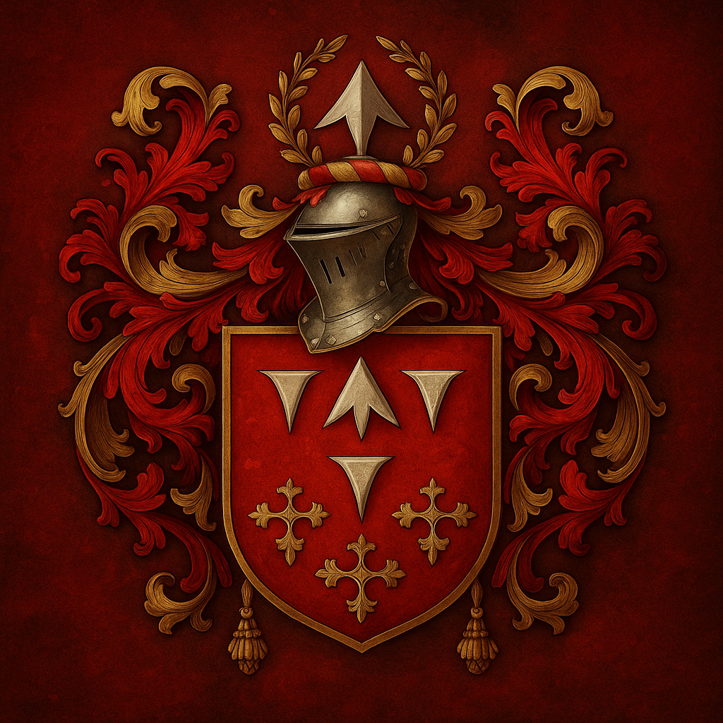 Das Wappen symbolisiert Tapferkeit, Wehrhaftigkeit und den christlichen Glauben – Tugenden, die für die Pappenheimer in besonderem Maße galten. Über dem Schild erhebt sich der Helm mit einem silbernen Pfeil zwischen goldenen Lorbeerzweigen, Sinnbild für Ehre und Standhaftigkeit. Ihr Wappen bleibt in Kirchen, Grabplatten und Siegeln der Region erhalten – als Zeugnis eines Geschlechts, das Ritterehre, Pflichttreue und adelige Würde über Jahrhunderte hinweg verkörperte.